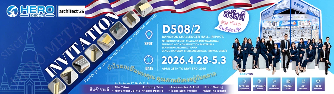 With 10 years of professional experience and quality assurance since 2015, Hero Metal® delivers ISO9001, BSCI, and SGS certified tile trims, skirting boards, stair nosings, and tile accessories, ensuring unparalleled quality and reliability. We are your most reliable metal decorative lines manufacturer in china.